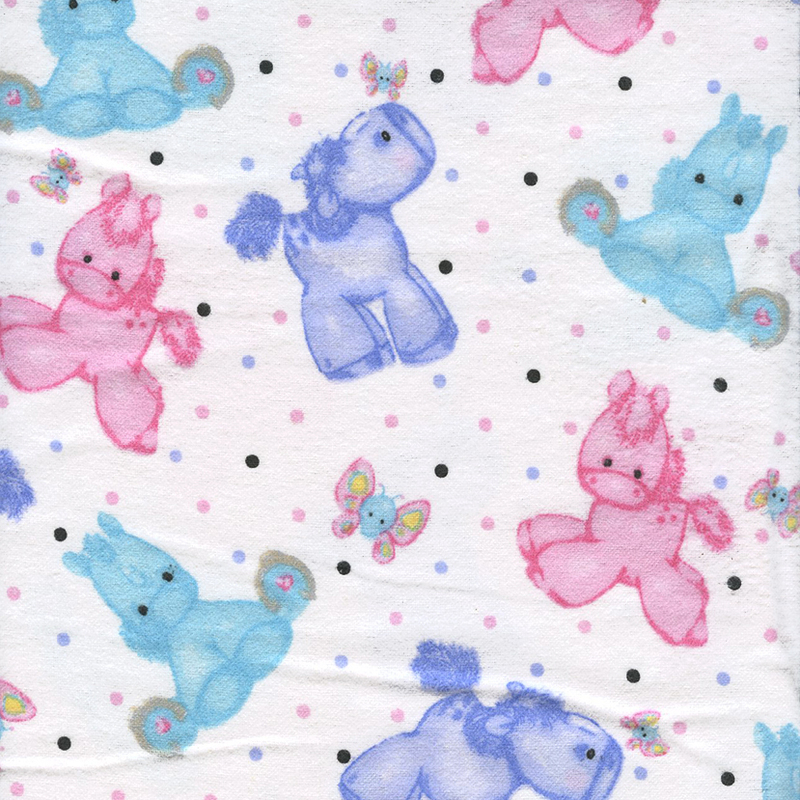 Pastel Polka Dot Ponies & Butterflies on White Flannel